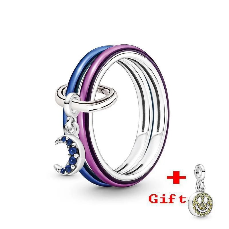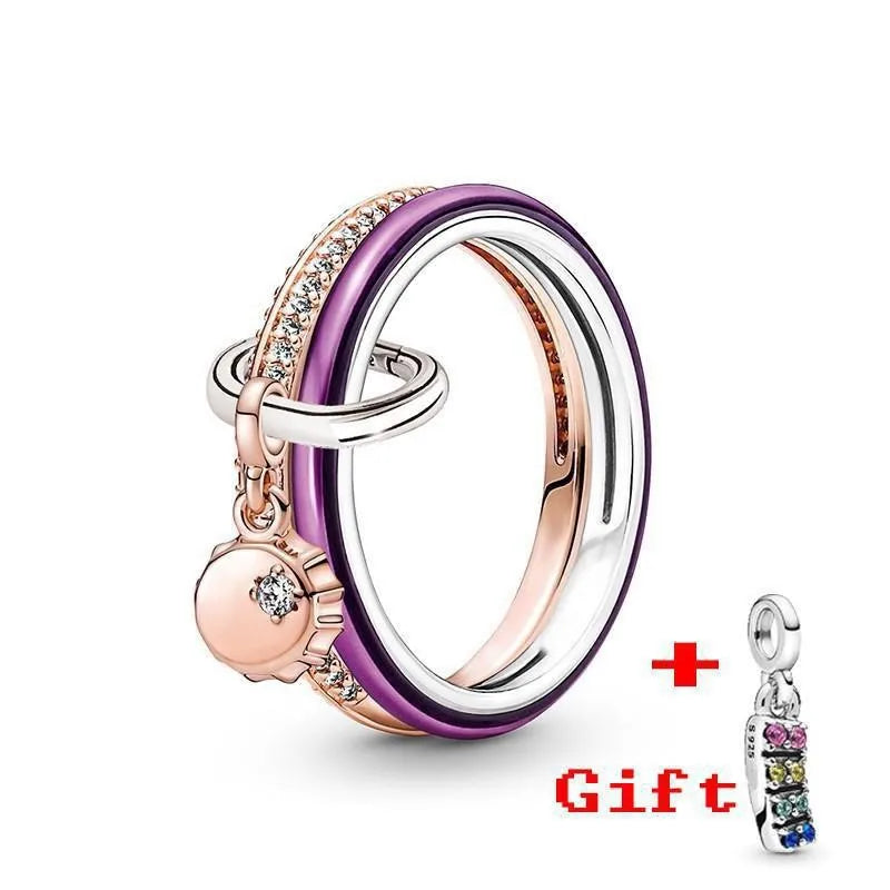 Pandora New Hot 925 Silver Lucky Bottle Cap Happy Smiling Face Peach Heart Women's Logo Combination Ring High Quality DIY Charm Jewelry