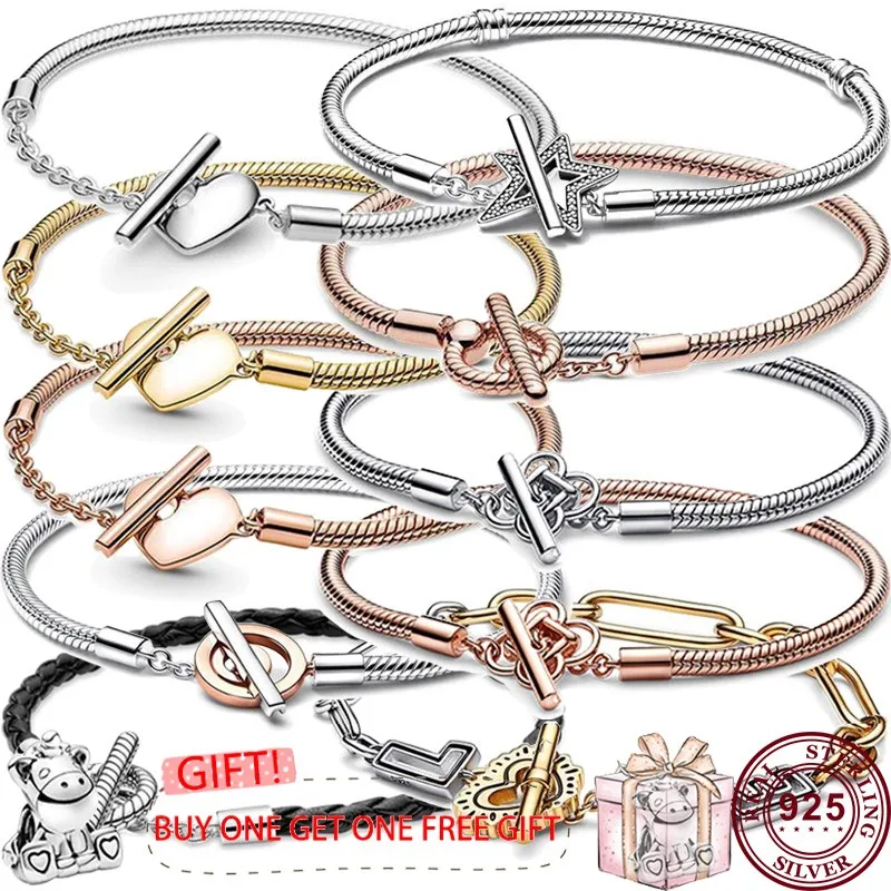 Pandora New Hot 925 Silver Signature Series Lucky Asymmetric Star Women's Original Love Heart T-Sign Bracelet Wedding DIY Charm Jewelry