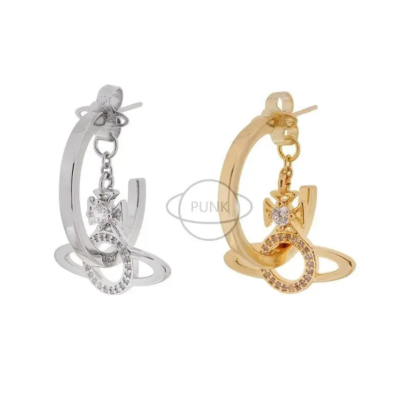 vivienne westwood saturn orb Starry Sky Lovers Western Space Poster Ring Sparkling Crystals High-end Feel Hoop Earrings Trendy Accessory
