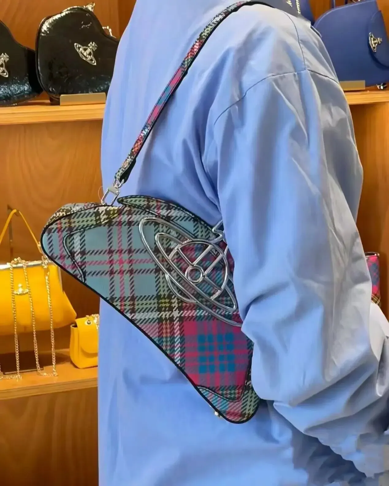 • Plaid Underarm Bag :The plaid pattern of the underarm bag adds a touch of elegance and sophistication. It's a stylish accessory that complements any outfit.